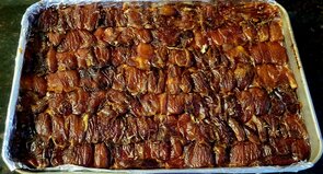 - Abres cada dátil, lo aplanas y lo colocas al revés en la bandeja que alistaste. Llena la bandeja de dátiles aplanados y volteados