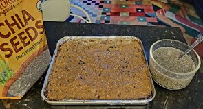 - Dependiendo de la bandeja calcula cuantas cucharadas de semillas de chía necesitas y cuando estén gelatinosas las colocas sobre la capa de mantequilla de almendra.