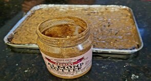 - Luego le colocas la mantequilla cruda de almendra crujiente